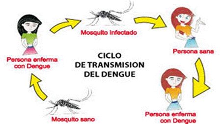 Cuando el mosquito se alimenta con sangre de una persona enferma de dengue y luego pica a otras personas, les transmite esta enfermedad. El contagio solo se produce por la picadura de los mosquitos infectados. No se transmite directamente de una persona a otra, ni a través de objetos, ni de la leche materna.
